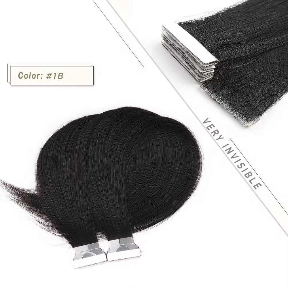 Lyxigt Remy Tejplöshår – Äkta Hår Extensions med Osynliga Fästen. Återanvändbart med tejpremsor och enkelt att styla för ett långvarigt, professionellt resultat. Tejpen sitter utmärkt och är osynlig!